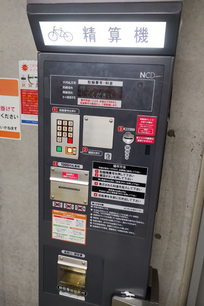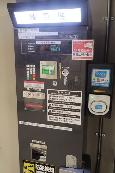 精算機での支払い方式。最初の90分無料で150円/12時間。