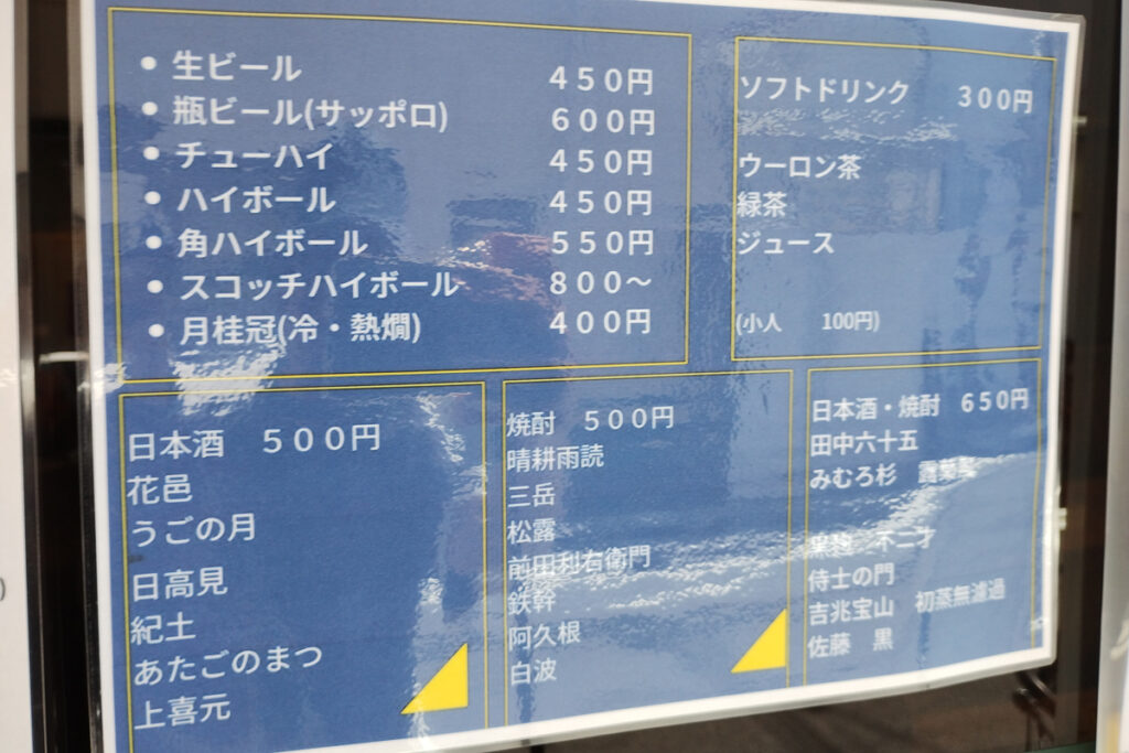 店頭にあるメニューでは、おばんざい盛り合わせや、富士宮焼きそば、博多水炊きなんかもありました。