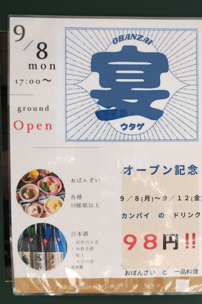 以前に「オムライスのぺヨコ」があった店舗に、新たに居酒屋がオープンするようです。おばんざい「宴(うたげ)」という名前で、2025年9月8日オープン。様々なおばんざいとこだわりの料理やお酒が楽しめるそうです。