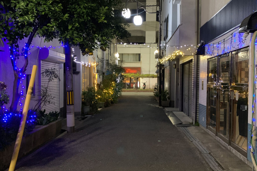 路地は「さかい珈琲」さんから、パン屋さん「NOEL BREAD」さんの所までの数メートル。 「普段暗くて狭い路地を、クリスマスマーケットで明るくあったかい場所にしよう!という目的で、イルミネーションの設置からマーケットの開催まで近隣の方やお客さんなど多くの方にご尽力頂き開催までこぎつけました」とのことです。ローカルの力って感じがして素敵やん。