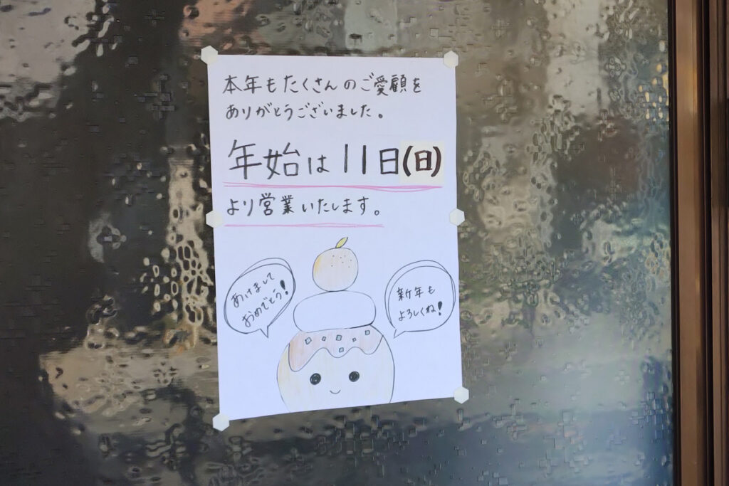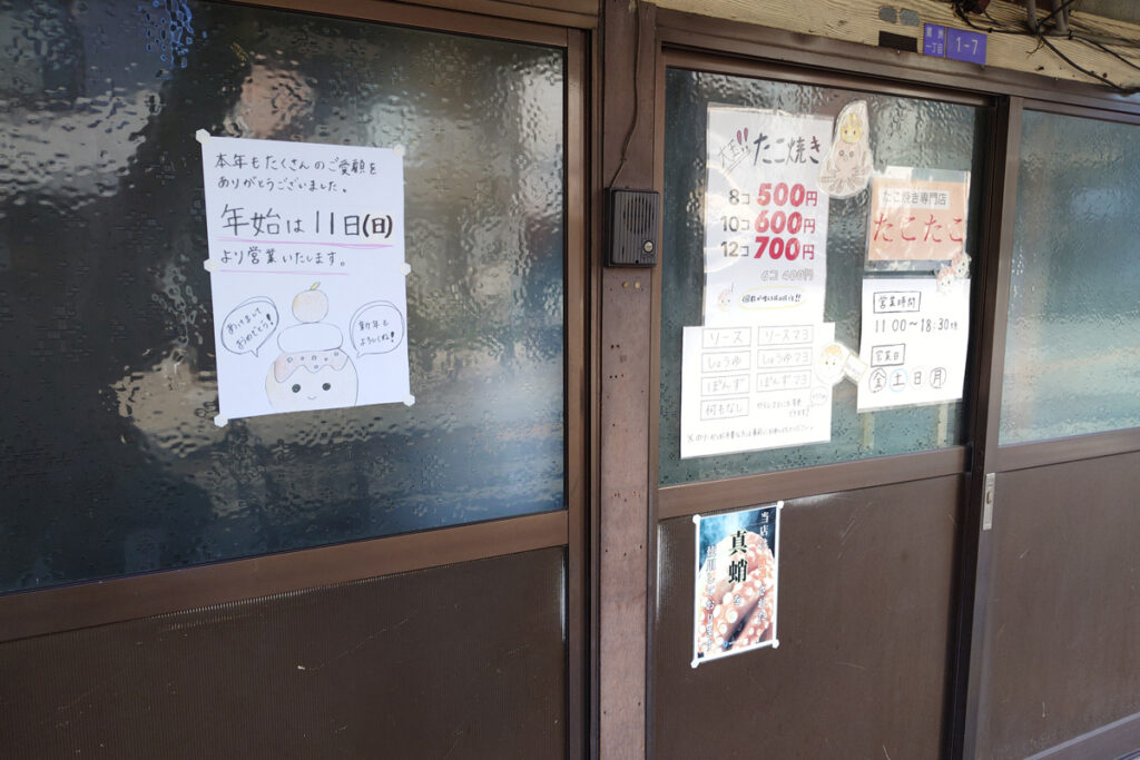たこ焼き「たこたこ」(鷺洲1-1-17)の年始は2026年1月11日から。はよ食べたいな~。