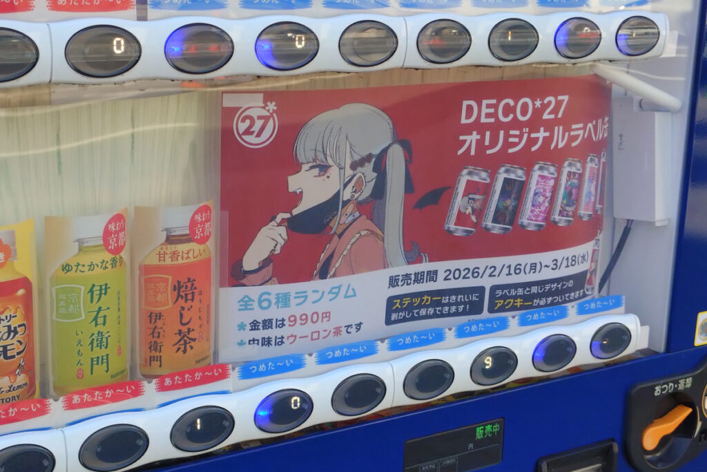 DECO*27 × TAG LIVE LABELのオリジナルラベル缶が、サントリーの自販機で販売されてました。このブログを見ている方のほんとどはなんのこっちゃ?だと思いますが。場所は大阪市福島区吉野3-21付近。セブンイレブン大阪吉野2丁目店(福島区吉野2-9-10)の道向かいあたりです。この自販機、たまにこういったサブカル関連の缶を販売してたりします。先日までは銀河特急ミルキー サブウェイのが売ってました。