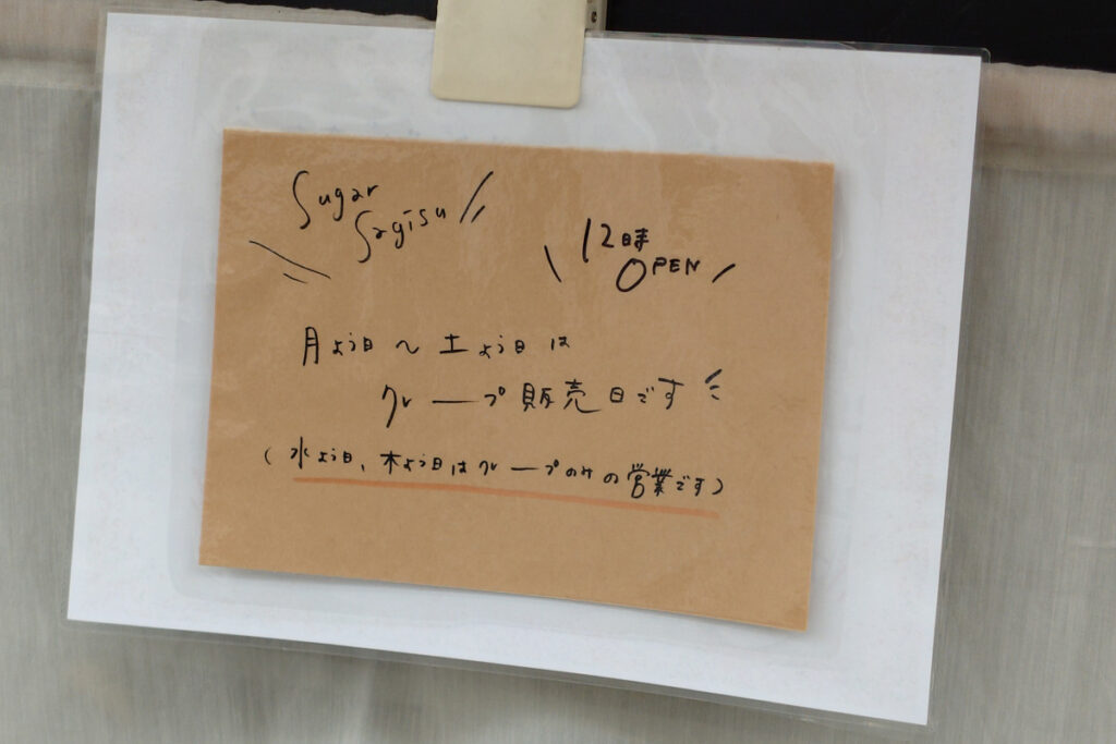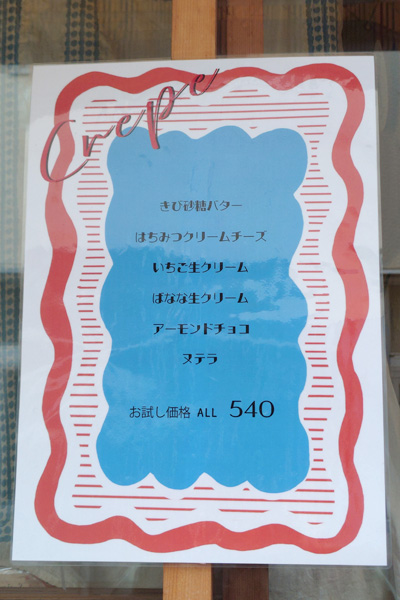 ちなみに月曜から土曜日がクレープ販売日。12時オープンです。同店は定休日が水・木曜日ですが、クレープのみ販売されるようです。